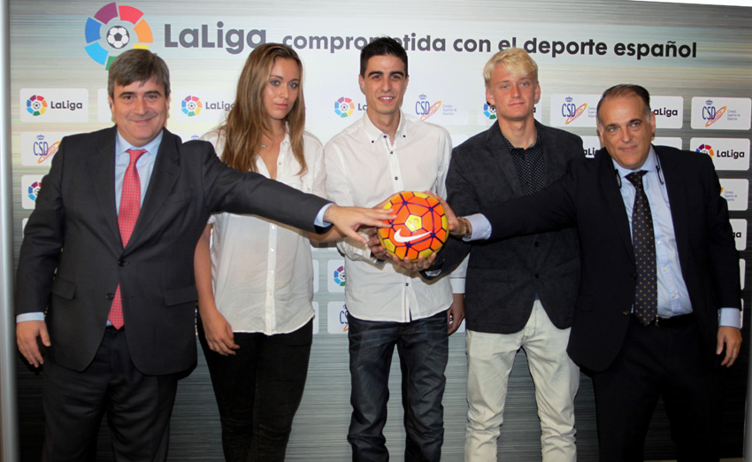 La directora de programas deportivos de RTVE recibe en el CSD, de manos de su presidente, Miguel Cardenal, …