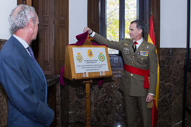Su Majestad el Rey, acompañado por el ministro de Defensa, Pedro Morenés, ha visitado hoy las nuevas instalaciones de las Reales y Militares Ordenes de San Fernando y San Hermanegildo, ubicadas en el cuartel ‘Complejo Princesa’, en Madrid.